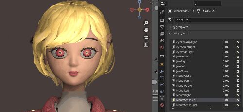 さて、口周りのシェイプキーです。 口が小さかったので大きな動きができない。。。 まぁいいか、、、 これで25/53。 半分近くシェイプキーができました。